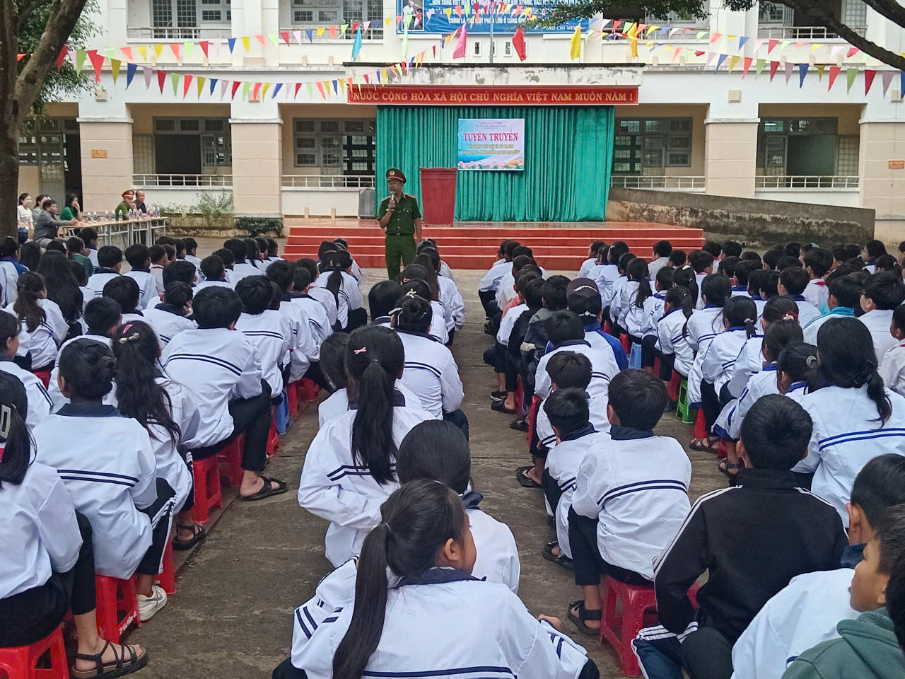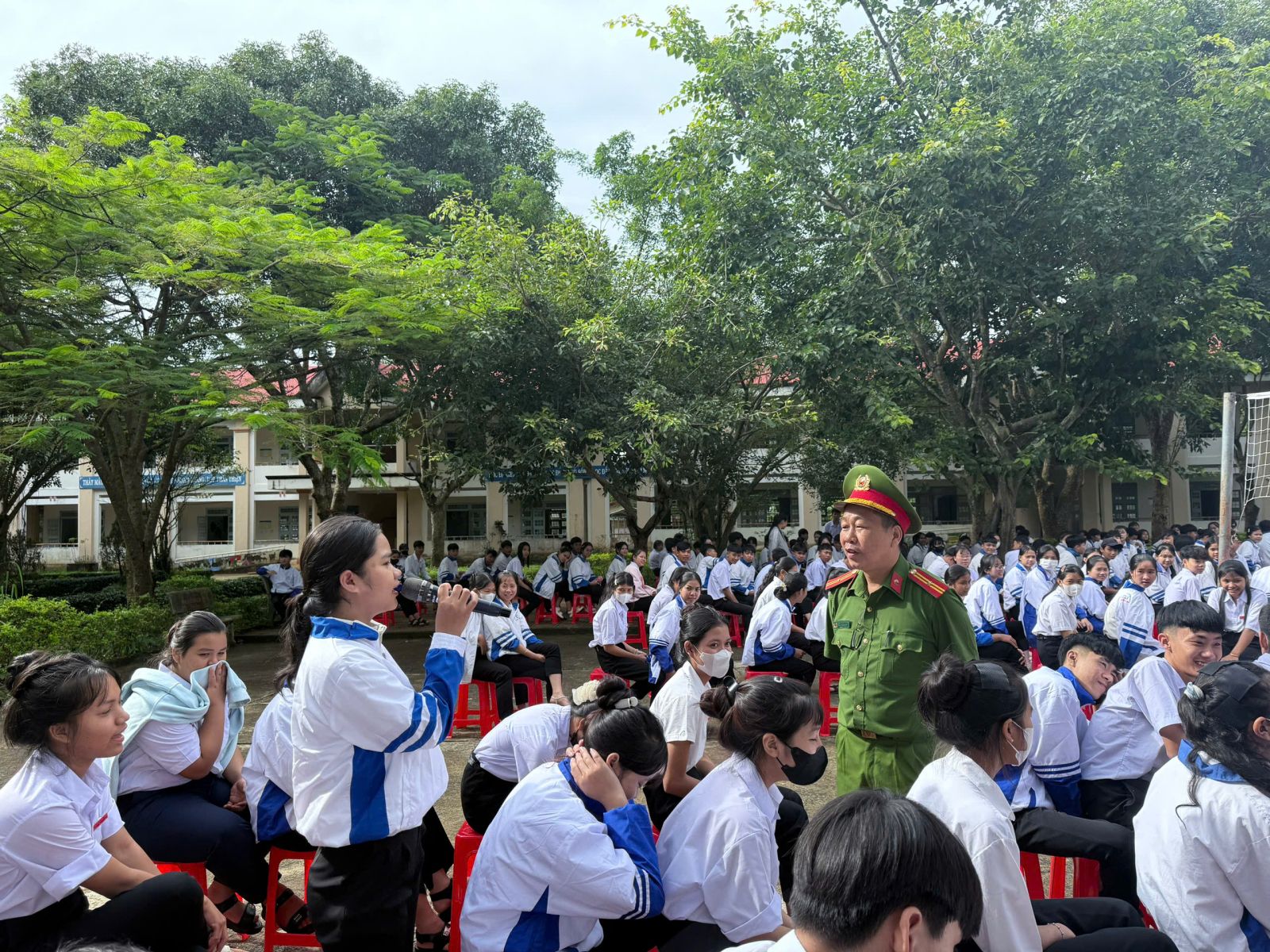 Nội dung tập trung vào an toàn giao thông, phòng chống ma túy, phòng chống bạo lực học đường, kỹ năng phòng tránh tội phạm trên không gian mạng và quy định về quản lý, sử dụng vũ khí, vật liệu nổ, công cụ hỗ trợ. Với cách truyền đạt sinh động, gần gũi, các buổi tuyên truyền đã thu hút hơn 1.000 lượt học sinh, giáo viên tham gia, tạo hiệu ứng lan tỏa sâu rộng trong cộng đồng học đường. Đây là những hoạt động thiết thực, ý nghĩa, giúp học sinh không chỉ tiếp thu kiến thức pháp luật mà còn hình thành kỹ năng sống, ý thức trách nhiệm với bản thân, gia đình và xã hội.