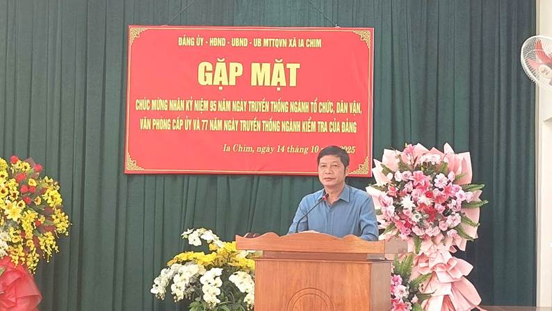 Sáng ngày 14/10, tại Trụ sở Đảng ủy xã Ia Chim, Thường trực Đảng ủy tổ chức gặp mặt chào mừng nhân kỷ niệm 95 năm Ngày truyền thống ngành Tổ chức xây dựng Đảng (14/10/1930 – 14/10/2025); Ngày truyền thống Dân vận (15/10/1930 – 15/10/2025); Ngày truyền thống Văn phòng cấp ủy (18/10/1930 – 18/10/2025) và 77 năm Ngày truyền thống ngành Kiểm tra Đảng (16/10/1948 – 16/10/2025).