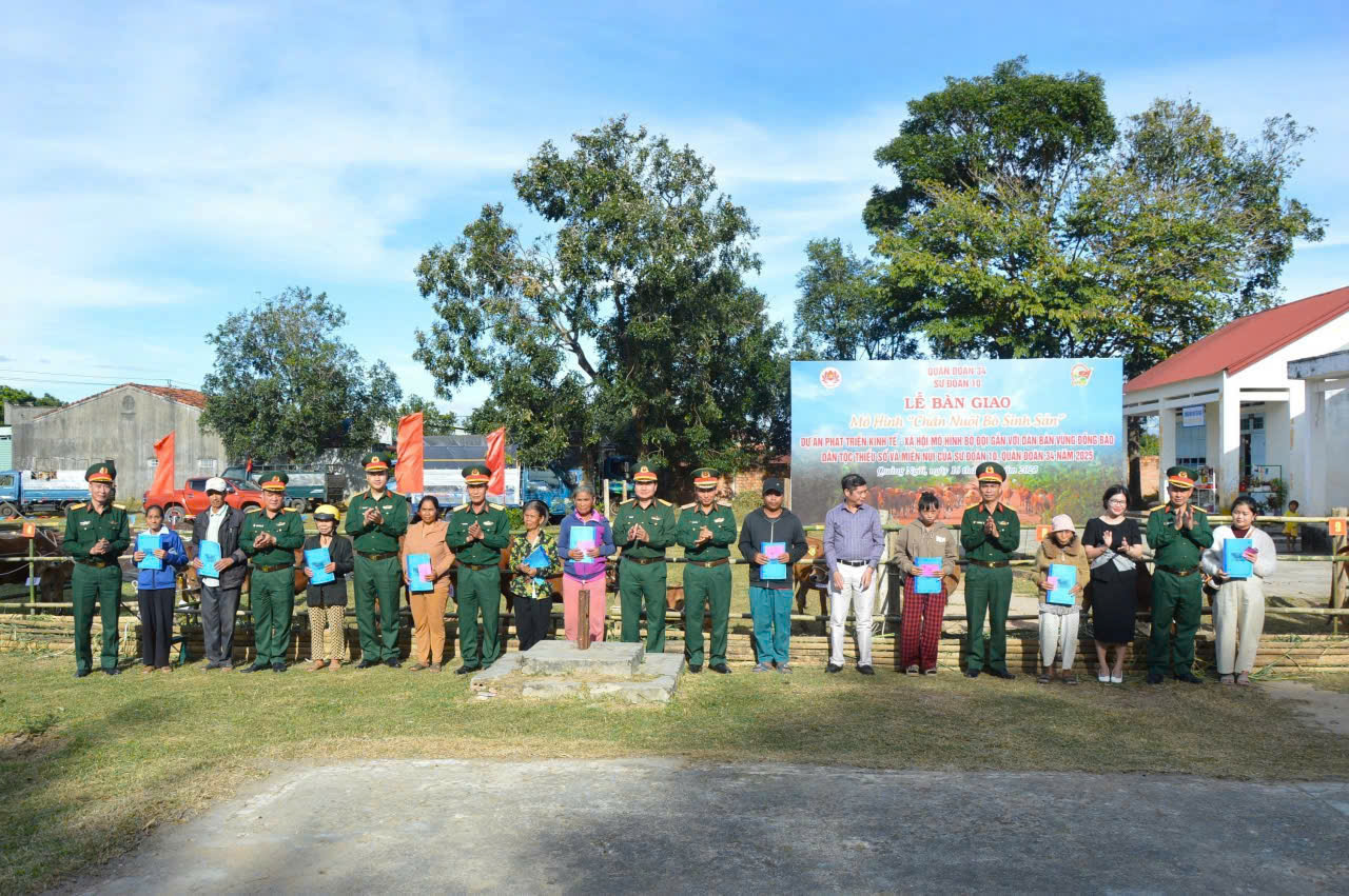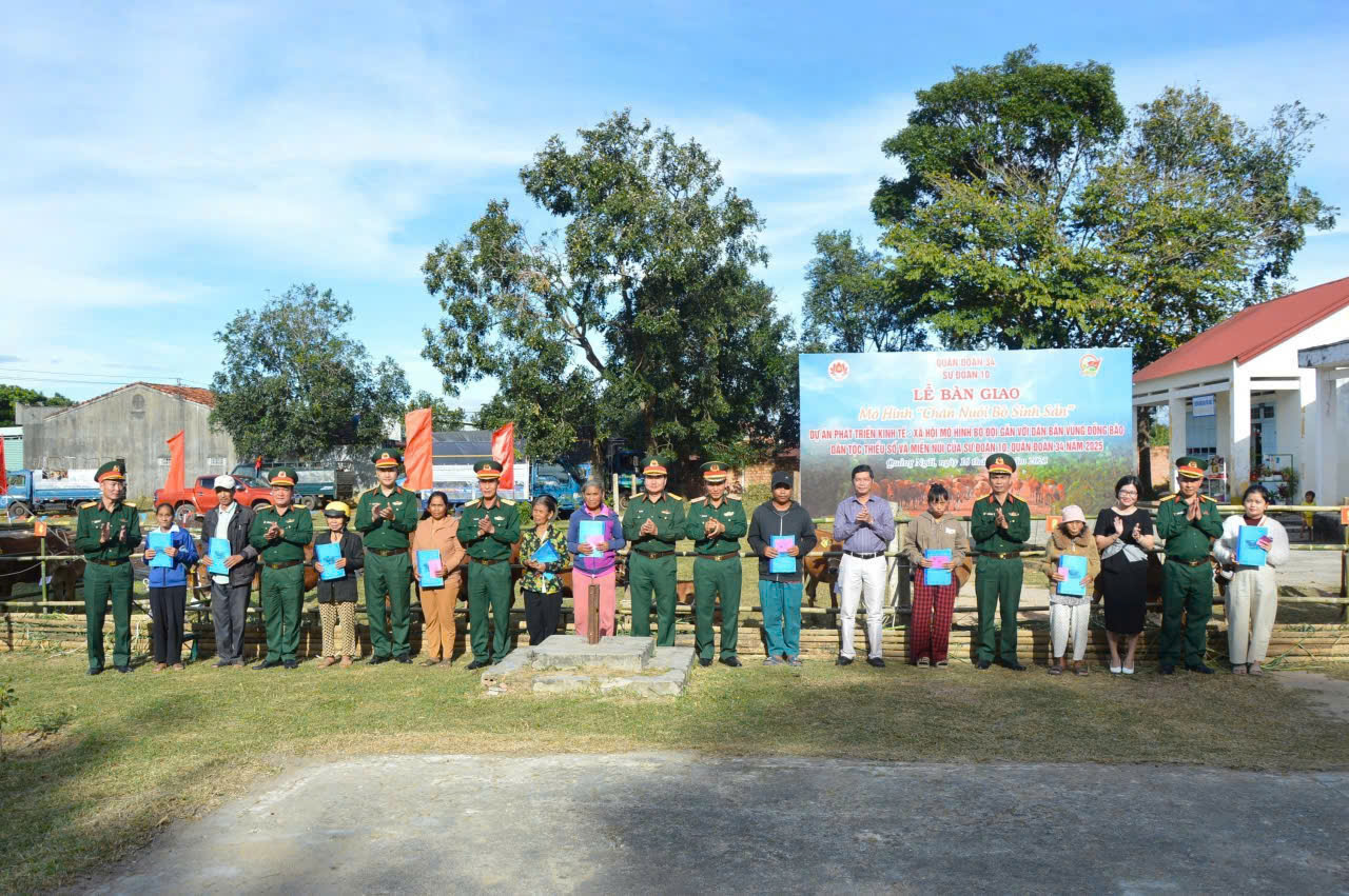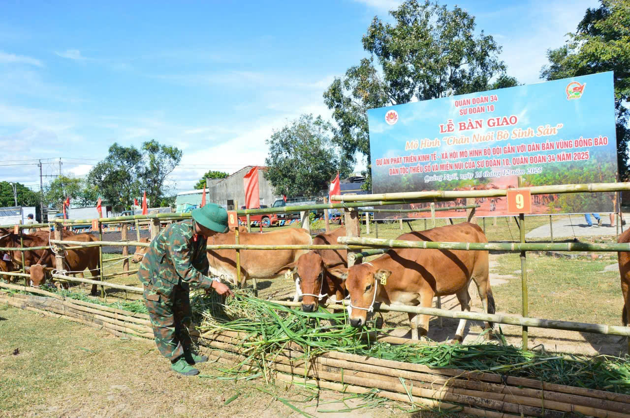Thực hiện Kế hoạch số 2733/KH-SĐ ngày 08/9/2025 của Sư đoàn 10 về việc “Thực hiện Dự án 3 – Tiểu dự án 3, phát triển kinh tế - xã hội mô hình bộ đội gắn với dân bản vùng đồng bào dân tộc thiểu số và miền núi”, ngày 16/12/2025, Sư đoàn 10 đã tổ chức Lễ trao bò sinh sản cho bà con đồng bào dân tộc thiểu số trên địa bàn xã Ia Chim, tỉnh Quảng Ngãi.