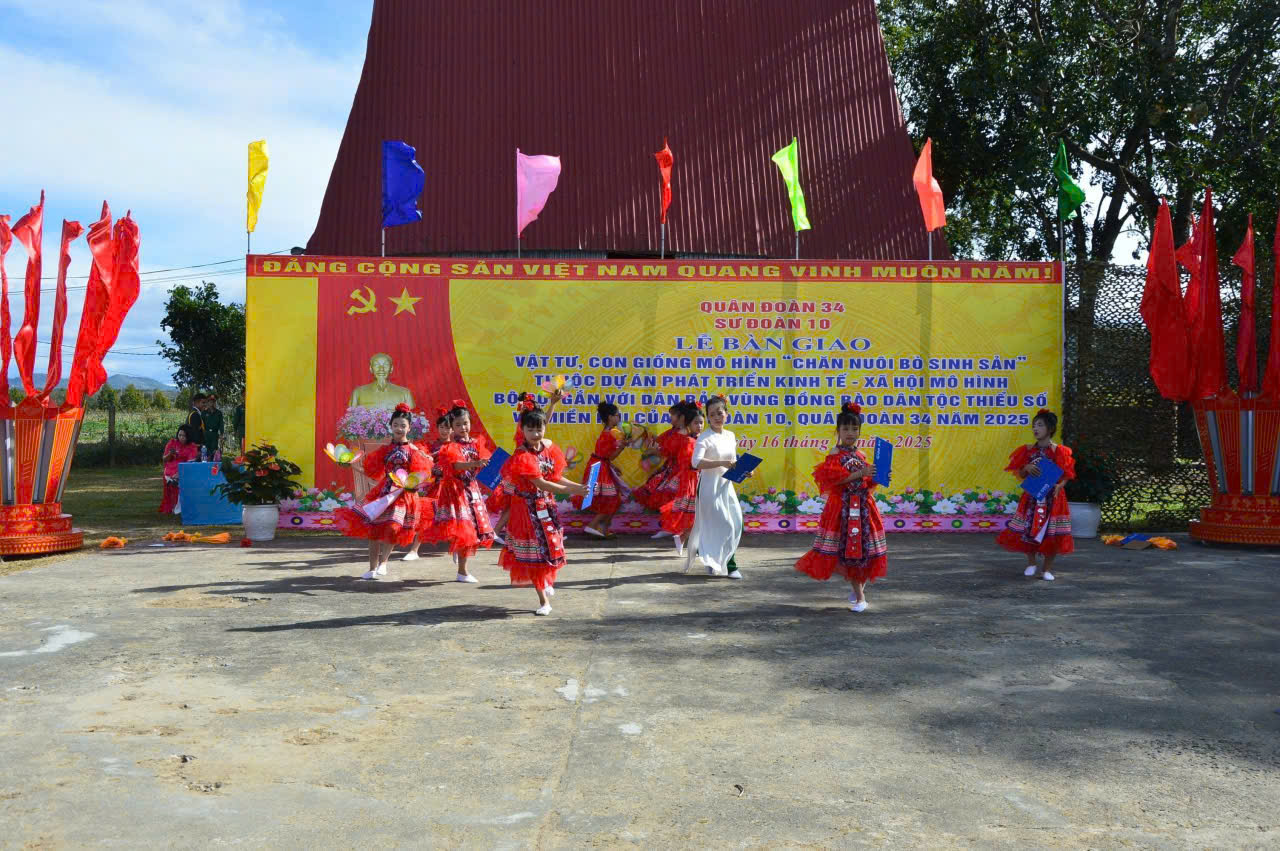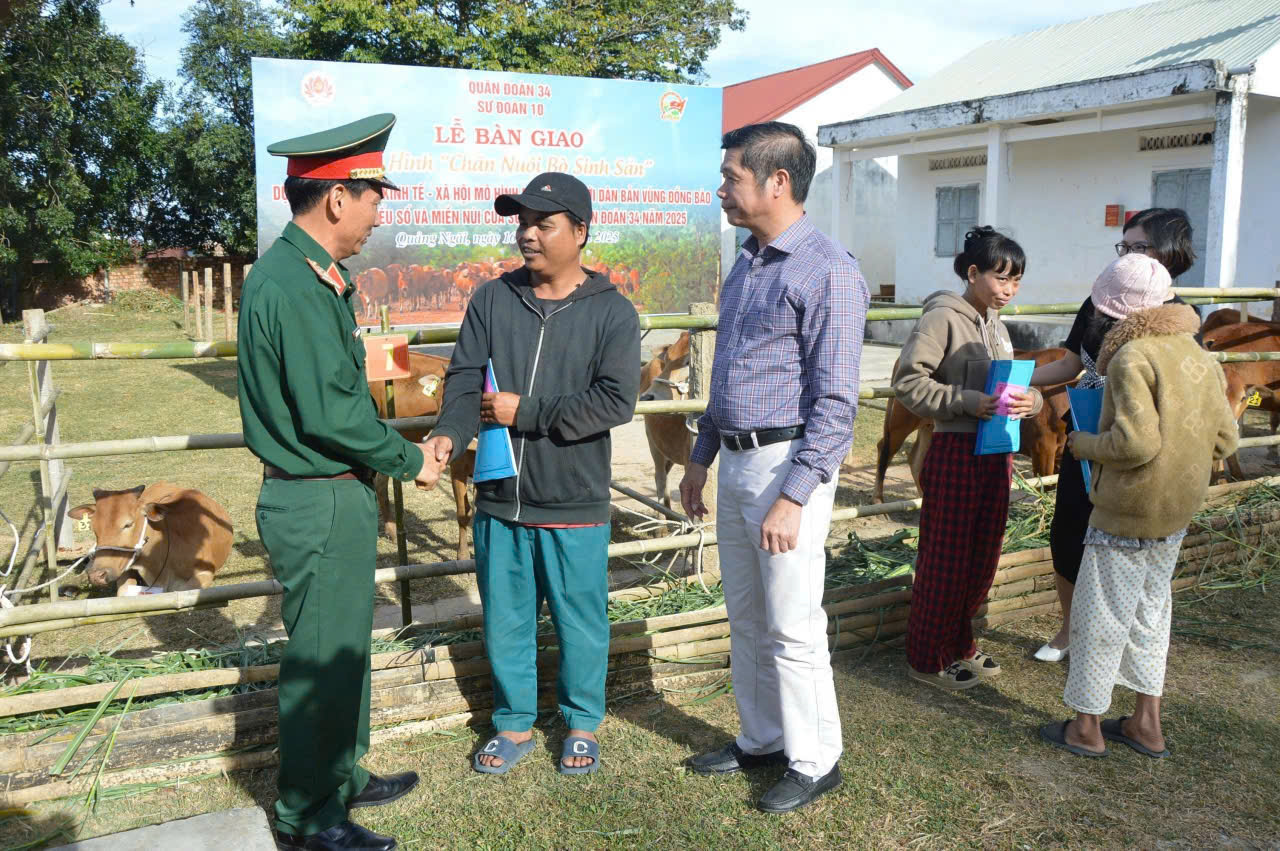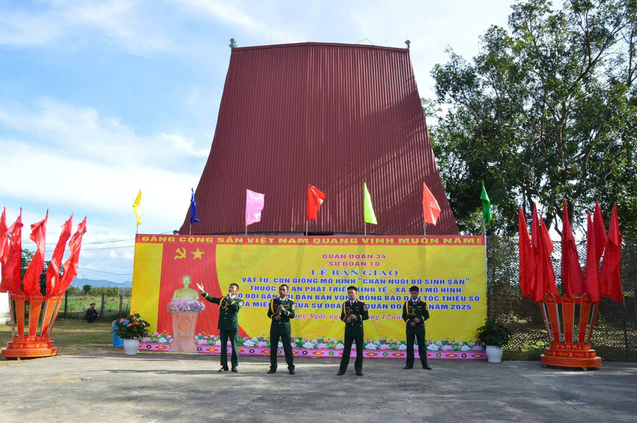 Thực hiện Kế hoạch số 2733/KH-SĐ ngày 08/9/2025 của Sư đoàn 10 về việc “Thực hiện Dự án 3 – Tiểu dự án 3, phát triển kinh tế - xã hội mô hình bộ đội gắn với dân bản vùng đồng bào dân tộc thiểu số và miền núi”, ngày 16/12/2025, Sư đoàn 10 đã tổ chức Lễ trao bò sinh sản cho bà con đồng bào dân tộc thiểu số trên địa bàn xã Ia Chim, tỉnh Quảng Ngãi.