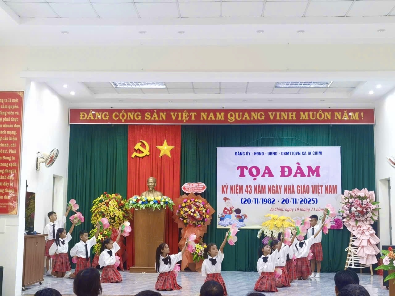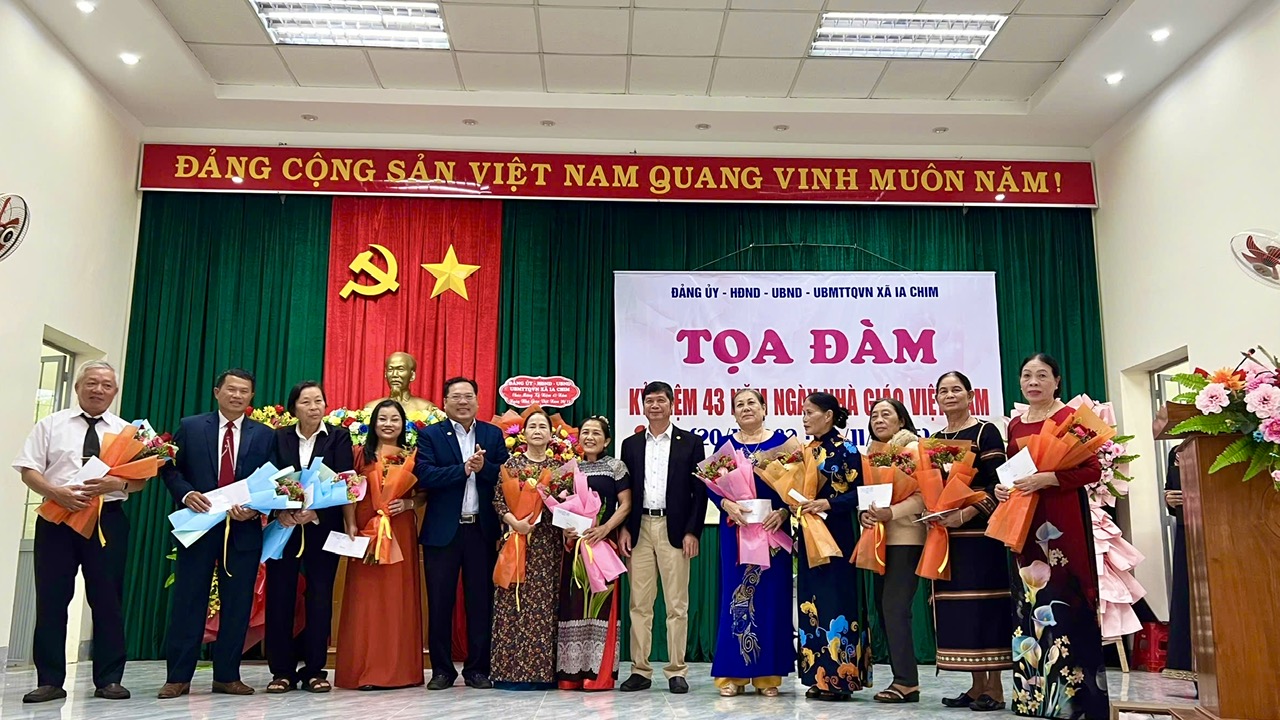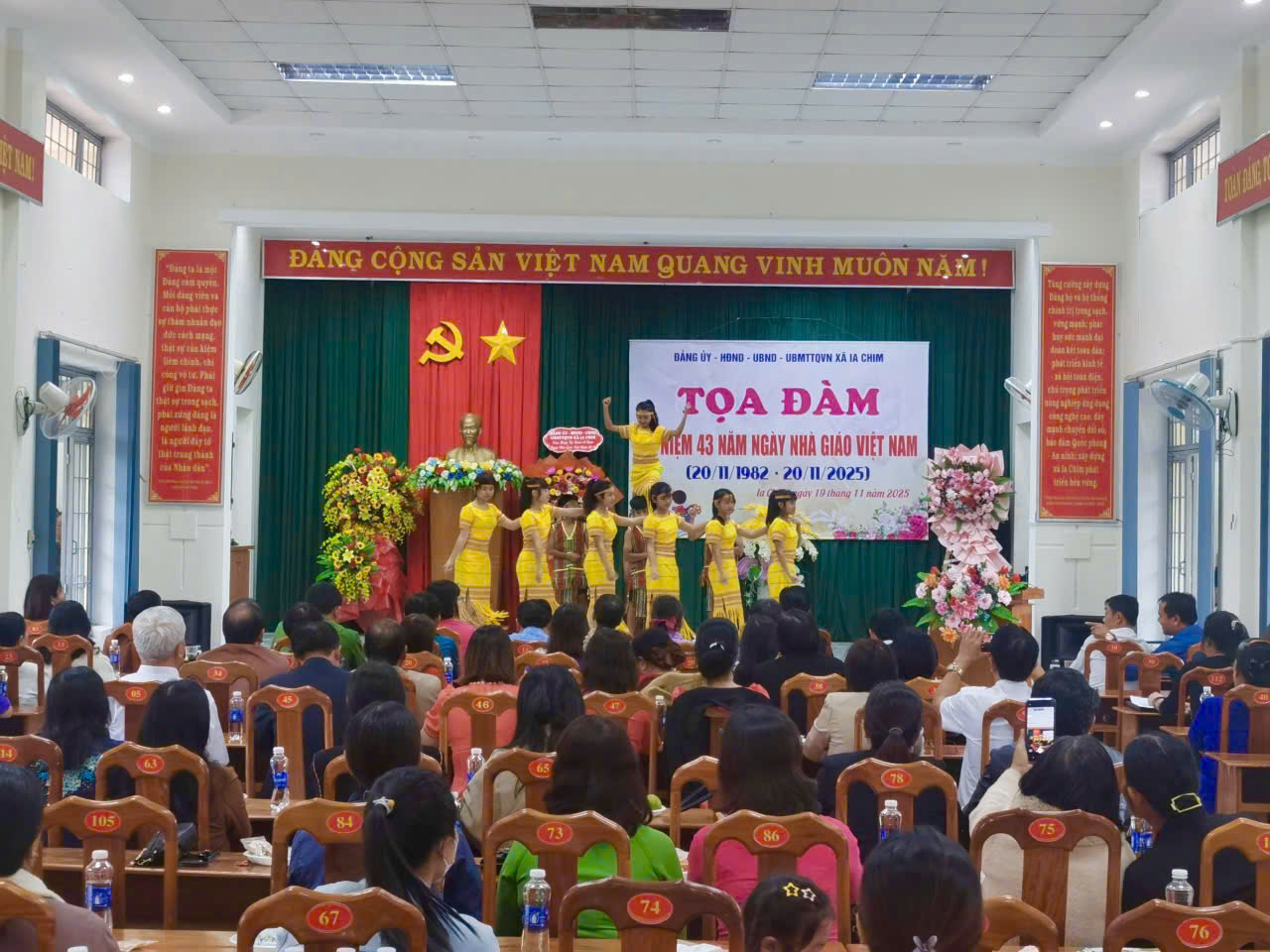 Nhân Kỷ niệm Ngày nhà giáo Việt Nam 20/11. Ngày 19/11/2025 xã Ia Chim long trọng tổ chức tọa đàm Kỷ niệm 43 năm Ngày nhà giáo Việt Nam 20/11/1982 - 20/11/2025. Về dự buổi tọa đàm có sự tham dự của các đồng chí trong Thường trực Đảng ủy, HĐND, UBND, UBMTTQVN xã, lãnh đạo các cơ quan chuyên môn của xã, cùng các thầy, cô giáo nguyên cán bộ quản lý, giáo viên đã nghỉ hưu trên địa bàn, đặc biệt còn có sự góp mặt đầy đủ của Hiệu trưởng, hiệu phó của 09 trường thuộc các cấp học trên địa bàn xã Ia Chim.